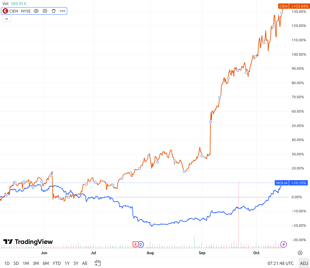 Et par ord om driverne bag Nokias forbedrede omdømme. Sammenligning med Ciena. →