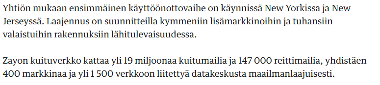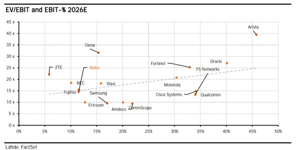 Verkkoinfran arvostusmultippeli on nyt heillä 18x EV/EBIT, eli tällä päästään lähemmäs kilpailijoiden arvostuksia. Mutta ei tämä vielä ole mikään kuplahinnoittelu.