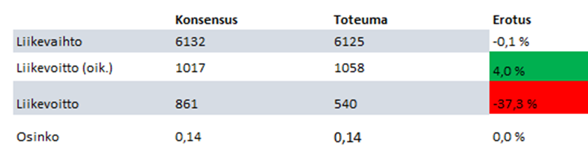 Hiukan vaatii enemmän kaivamista että miksi liikevoitto alitti odotukset vaikka vertailukelpoisesti oli ok. Ohjaus (vertailukelpoinen liikevoitto 2,0-2,5 miljardia euroa) oli juuri se mitä OP ennakoi, ja näin on joko varovainen tai sitten tämä on nyt tilanne ensi vuodelle.
