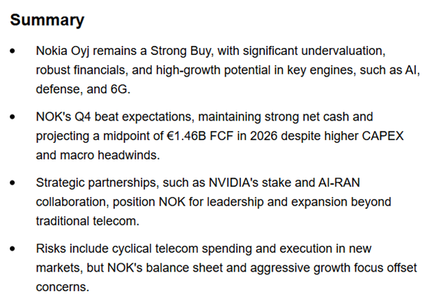 Alla on vielä yhteenvetona tekoäly kerännyt neutraalilla -tavalla käsiteltynä mitä Nokia kertoi 11/2025 CMD:n yhteydessä.