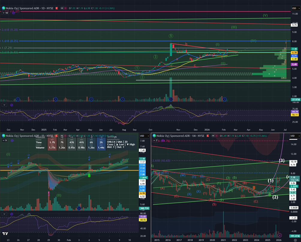 On Monday, February 9, 2026, Morgan Stanley initiated coverage of Nokia with an âOverweightâ rating and set a price target of USD 8.00 for the stock. This follows an update on January 15, 2026, when the bank added Nokia to its âTop Picksâ list for 2026.