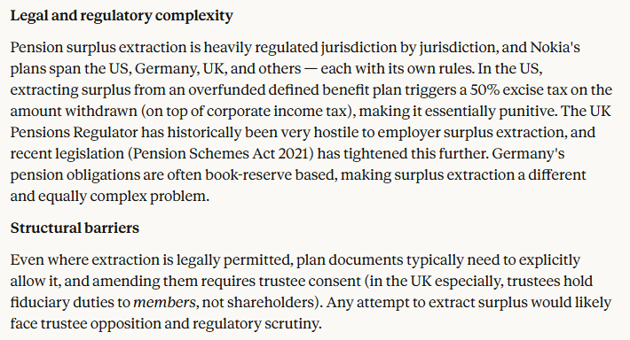 From what Iâve understood of the matter, that surplus canât just be transferred to shareholders just like that. There are likely quite a few legal hurdles across different countries involved. Claude had the following to say on the topic, among other things:
