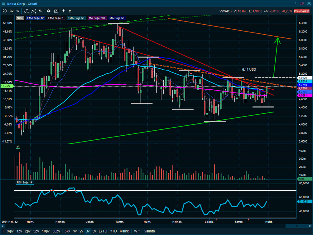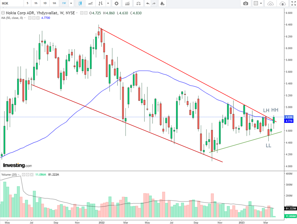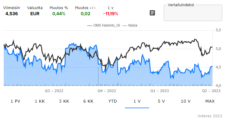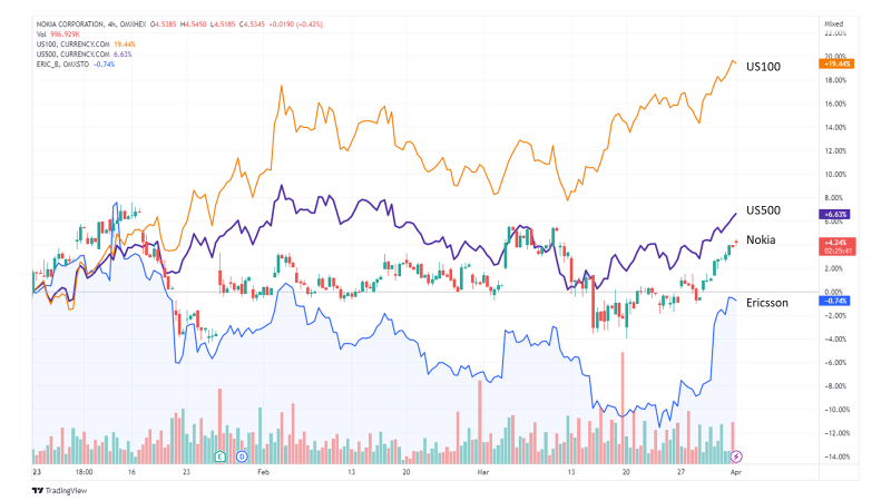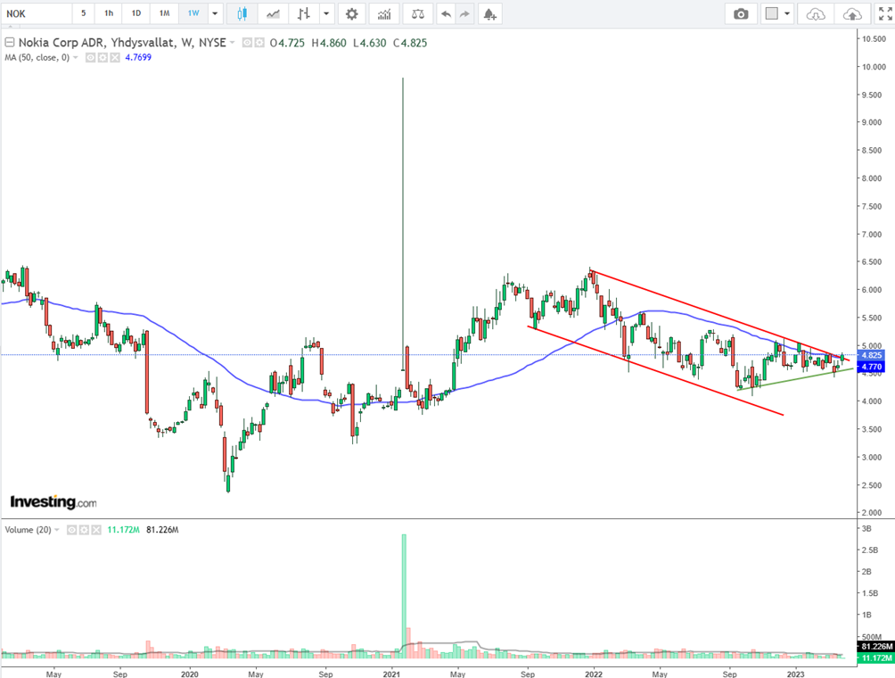 Den vigtigste driver for Nokias kurs er sandsynligvis udbygningen af 5G-netværk i Indien og synligheden af mulige stordriftsfordele i Nokias Q1/2023-regnskab.