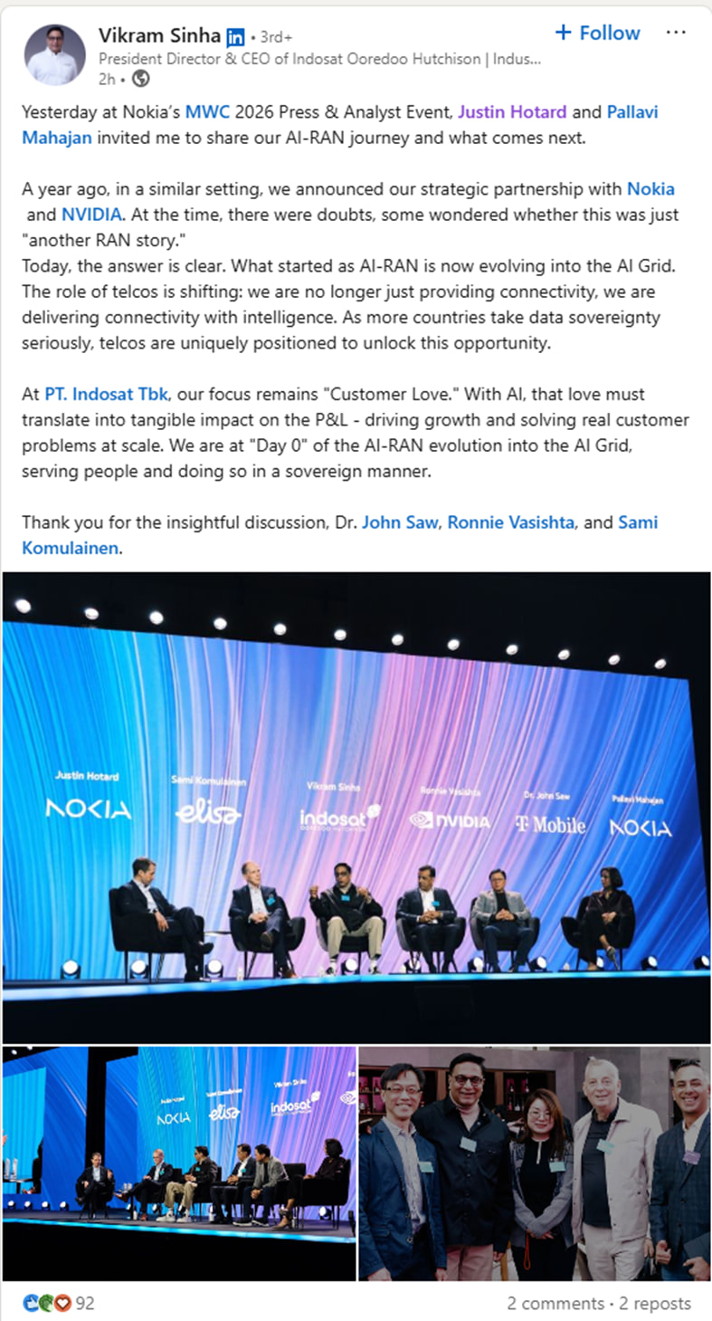 - Indosat (IOH): Kaakkois-Aasian ensimmäinen AI-RAN-pohjainen 5G-puhelu.