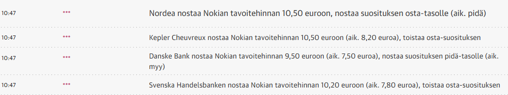 As I said yesterday, everyone is raising their target prices except for those who don’t trust Nokia’s future plans and are too cautious and negative about the stock. Many are already looking ahead to 2027/28, while some are still stuck in the negative cycle that surrounded Nokia in recent years.