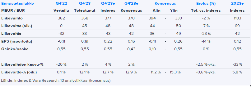 Nokian Renkaiden Q4-tulos, positiivinen ohjeistus vuodelle 2024 ja ennallaan pidetty osinko vastasivat pitkälti odotuksiamme.
