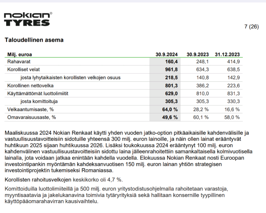 Eletään jänniä aikoja ja jotenkin on hyvä kutina uudesti syntyneestä Nokian renkaista ja kokemusta kuitenkin on paljon ja ei bisnestä nollista aloiteta ja vanha brändi antaa etunojaa mutta ei siihenkään tai sen varaan liikaa pidä laskea mutta sillä on suuri arvo tällaisessa bisneksessä.