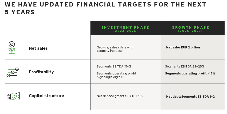 “Nokian Renkaat publicerade uppdaterade långsiktiga finansiella mål för de kommande fem åren i april 2023”