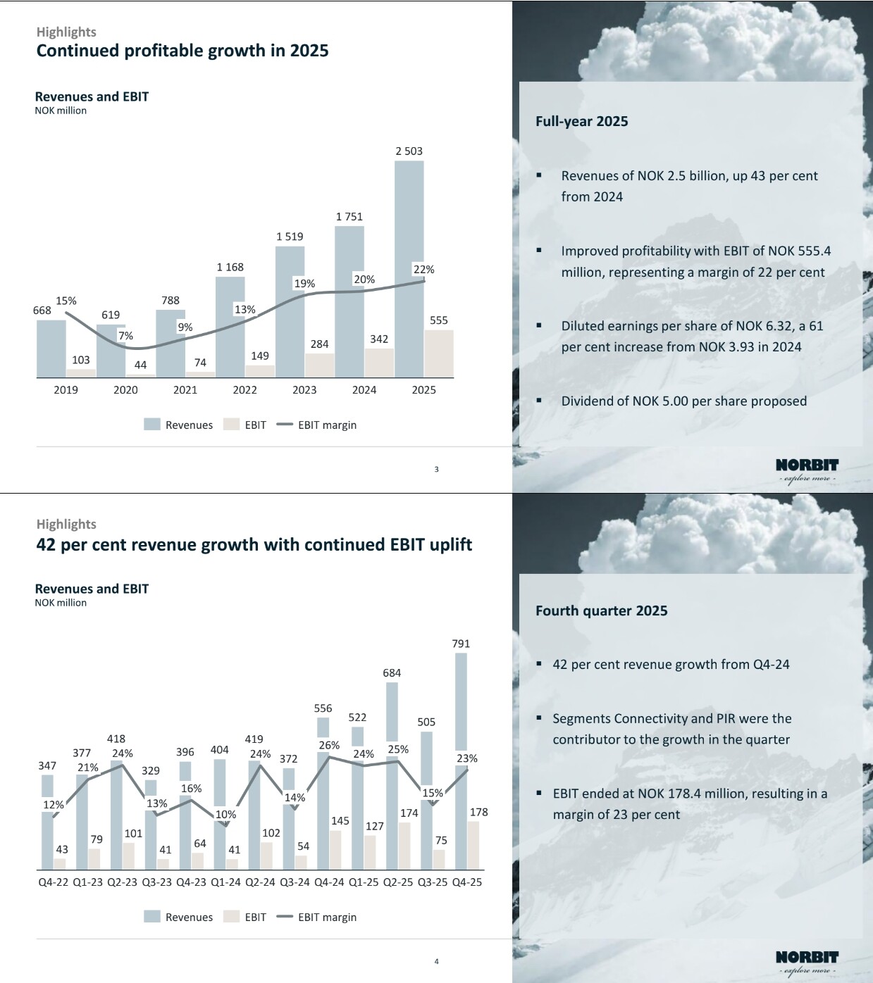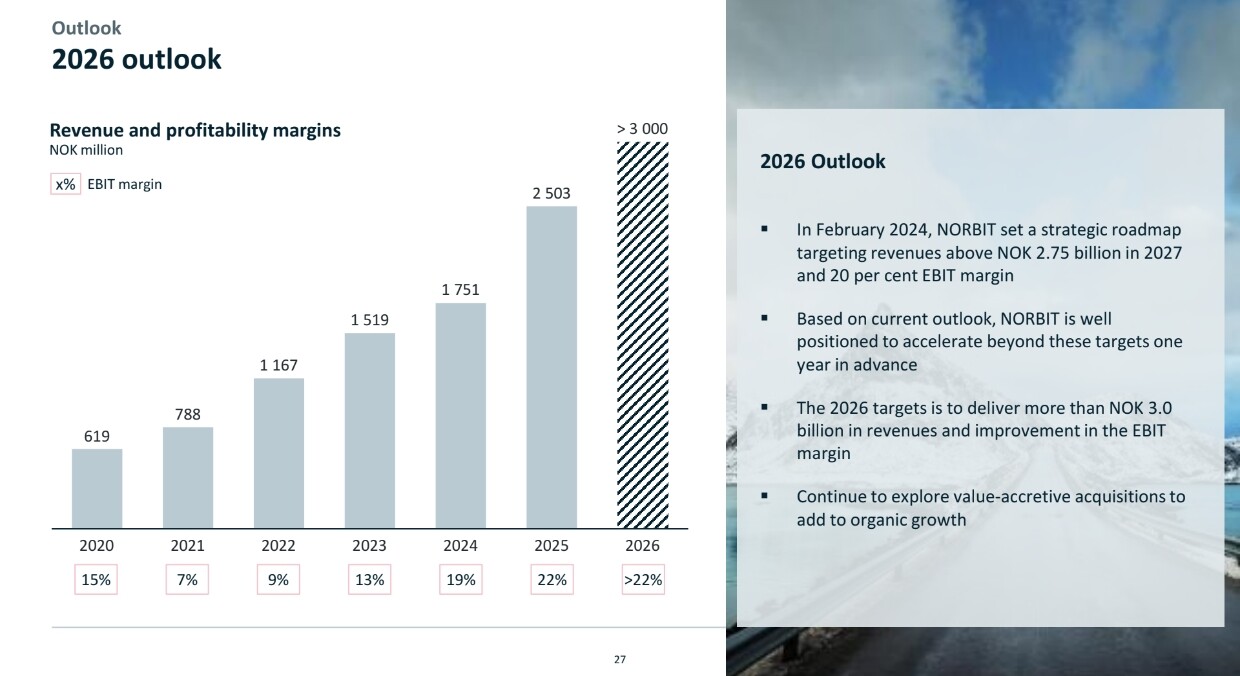 NORBIT delivered record-high revenues of NOK 2.5 billion million for the financial year 2025, with an operating profit (EBIT) for the full-year period at NOK 555.4 million, representing a margin of 22 per cent.