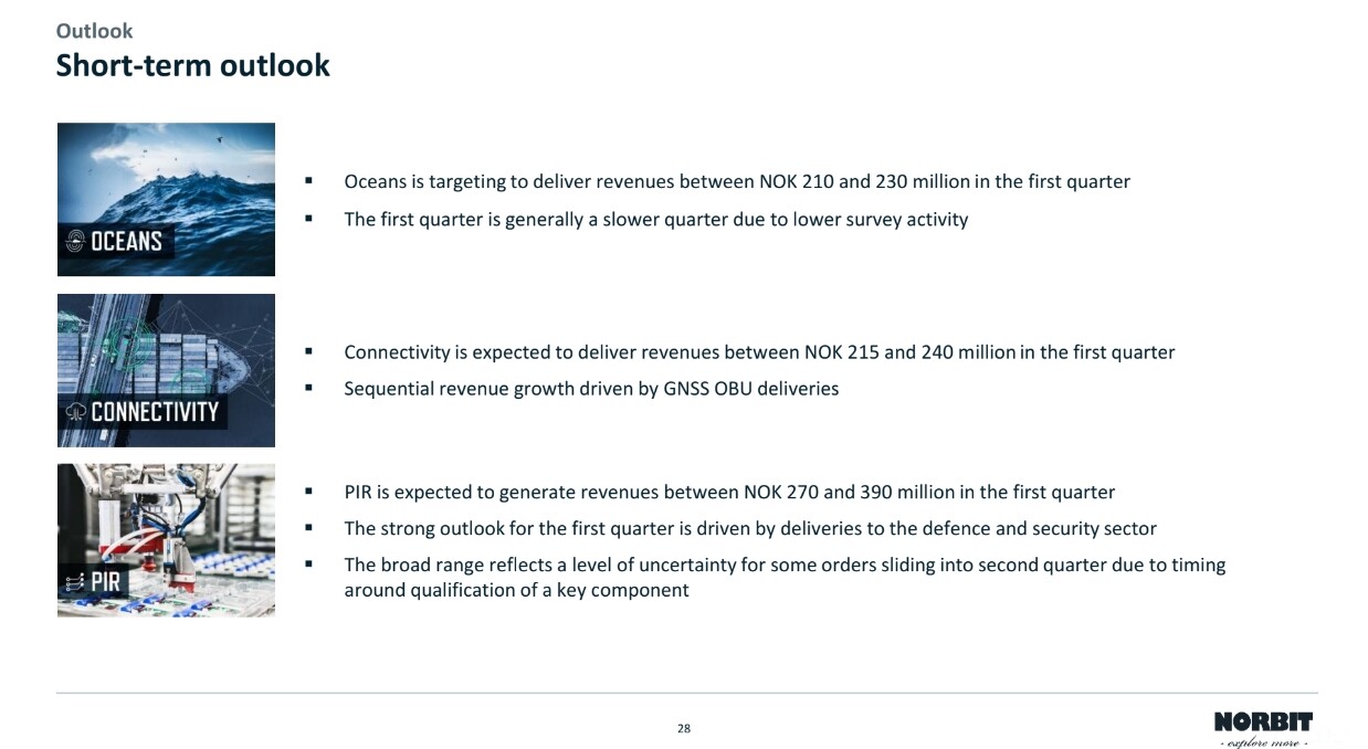- The Oceans segment reported revenues of NOK 213.4 million, a 21 per cent decrease from Q4 2024, with an EBIT margin of 26 per cent.