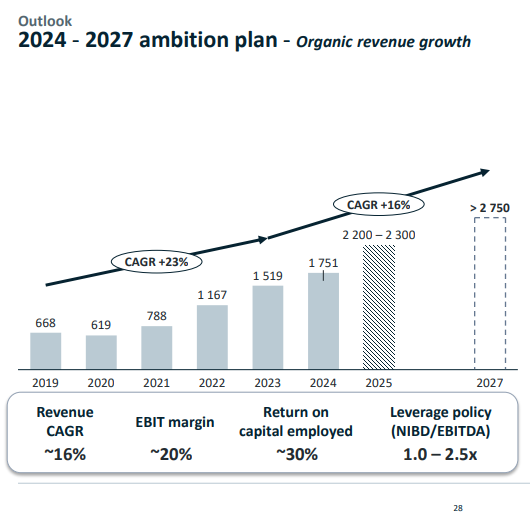 Liikevaihdon kasvu viimevuoden Q4 verrattuna oli massiiviset 40%. Tässä sisällä yritysostot, sekä orgaaninen kasvu. Ebit-% huimat 26%!