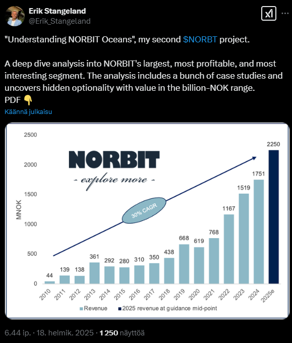 Alla siis oikein mallikas deep dive Norbitin Connectivity segmenttiin, joka usein jää hieman kaikuja valmistavan Oceans segmentin varjoon. Vaikka yhtiön mielestäni ihan hyvin tunnen, linkissä paljon myös uutta kulmaa. ![]()