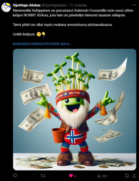 e. Samaan syssyyn @Sijoittaja-alokas antama shoutoutti X:ssä!