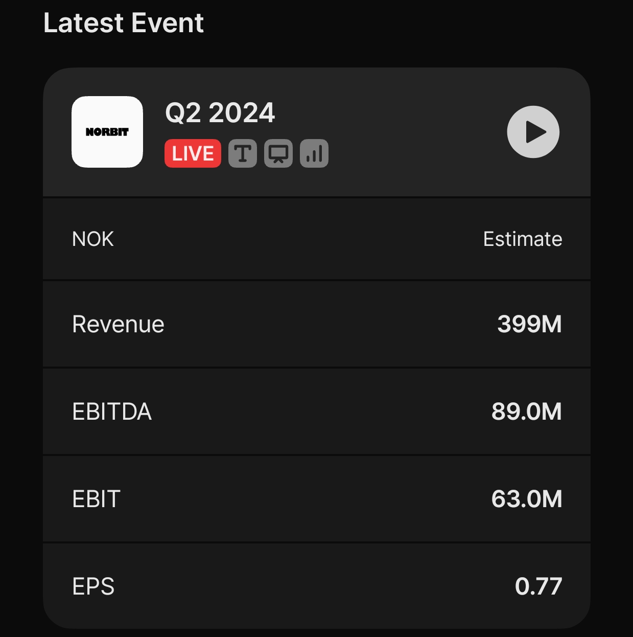 Jos Norbitin omat arviot Q3 vaihdosta toteutuu PIR ja Connectivity osalta ja Oceans vaihtaa saman kuin viimevuonna (0 kasvu) olisi Q3 liikevaihto 384MNOK. Jos Q4’24 olisi myös nollakasvua ja vaihto olisi samat 396 tekisi Norbit H2’24 780MNOK vaihdon. H1’23 vaihdettiin 823MNOK. Tällöin loppuvuoden nollakasvulla (paitsi Q3 ennakko) Norbitin liikevaihto olisi 1600MNOK. Eli noin 6% missi. Olisi tarinan kannalta ikävä, mutta ei katastrofi. En myöskään usko, että loppuvuosi on nollakasvua. ![]()
