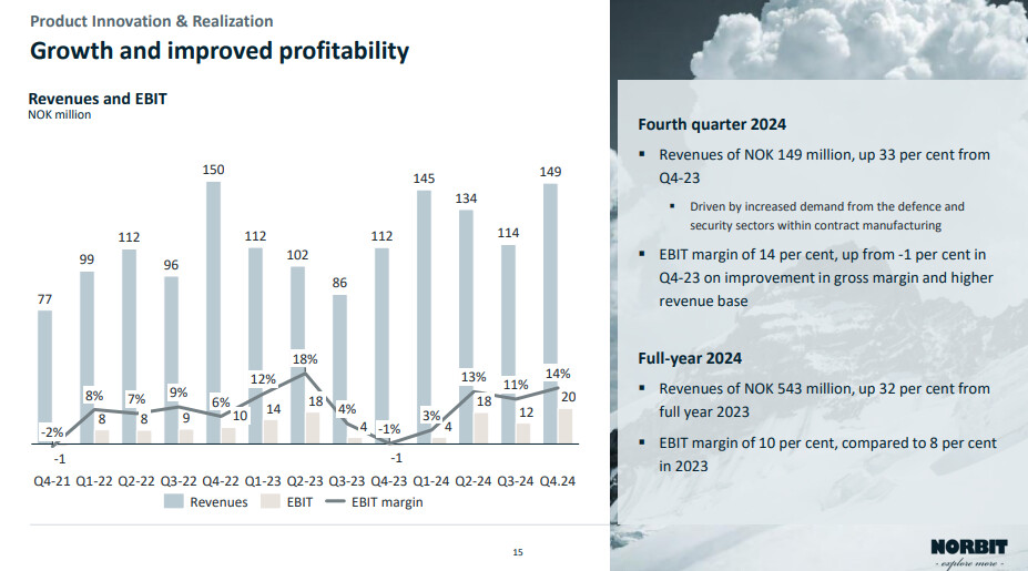NORBIT delivered record-high revenues of NOK 1,751.4 million for the financial year 2024, with an operating profit (EBIT) for the full-year period at NOK 341.7 million, representing a margin of 20 per cent.