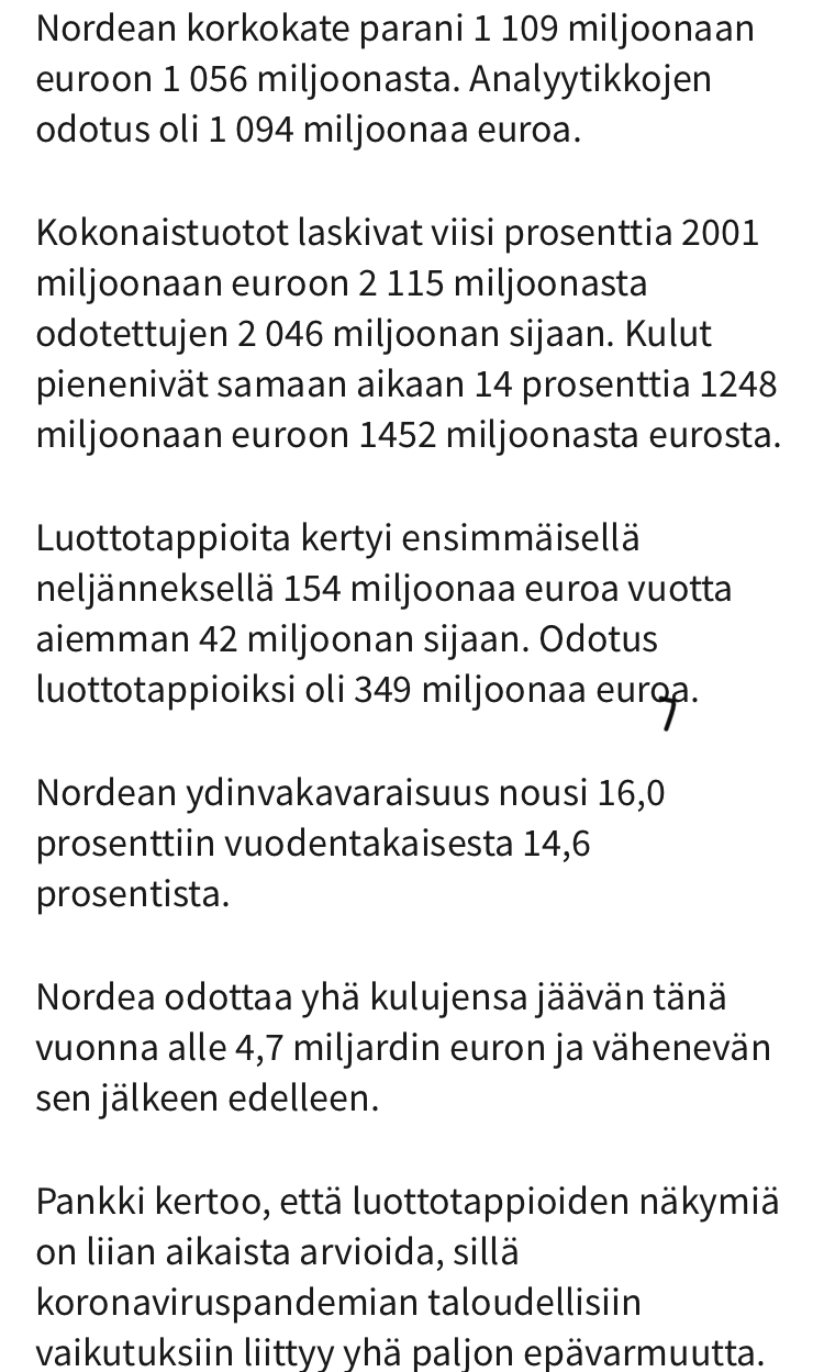 Toki vaikein on edessä, mutta kyllä pankkien välinen kilpailu hiukan helpottaa Korona-aikana ja pankit nostavat korkokatettaan!![]()
