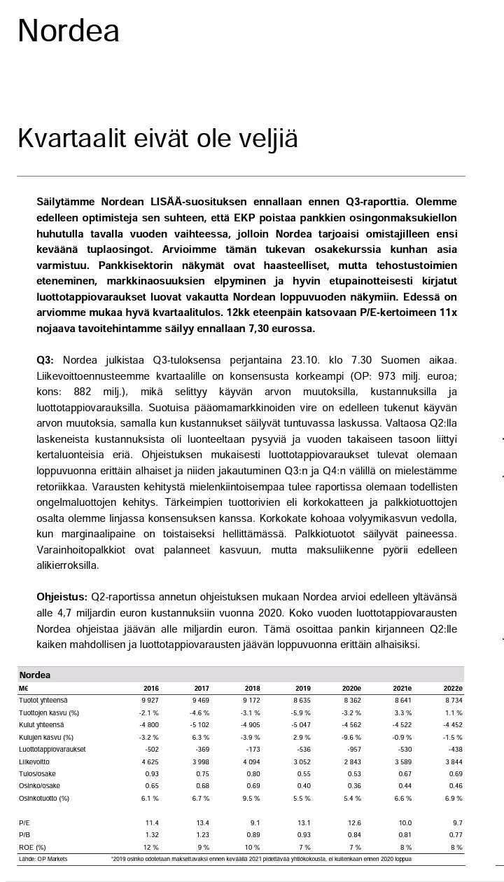 Saisiko tänne ketjuun ylös Nordean consensusta (blumma?) Q3:sta, niin pääsee heti perjantaina aamusta vähä vertaileen