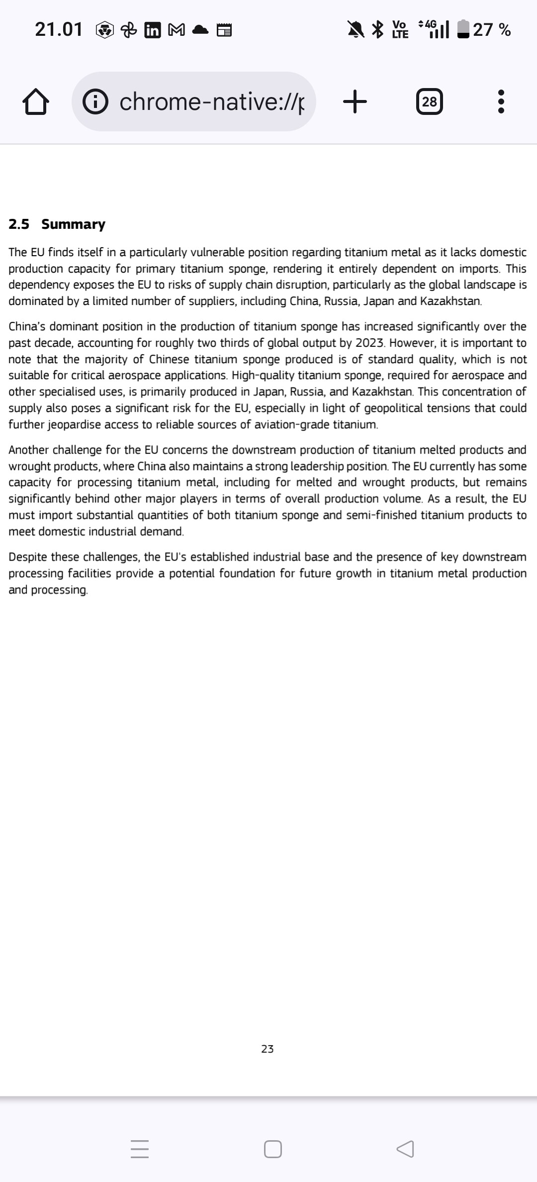 Ihan mielenkiintoinen raportti titaanin strategisesta merkityksestä euroopalle ja geopoliittisesta tilanteesta. Ja esim mikä kasvava merkitys titaanilla on puolustusteollisuudessa esim. Titaanin kysyntä drooneissa ja hävittäjissä.