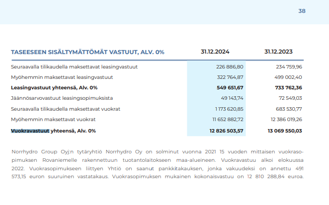 Ja onkohan tuo “Vuokrasopimuksen mukainen kokonaisvastuu” mikä tilinpäätöksessä mainitaan kokonaismäärä joka maksetaan koko vuokrasopimuksen ajalta eli 15v?
