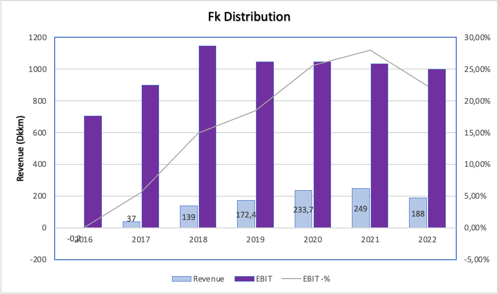 Tämä on ollut hauska löytö, kun tosiaan on poikkeuksellisen paljon tuota rahaa taseessa. Suuri vaikuttaja yhtiön arvoon on se, että kuinka monta vuotta saadaan kassavirtaa Fk Distributionin liiketoiminnasta. En osaa itse oikeastaan sanoa siihen mitään, mutta uskoisin, että kassavirtaa saadaan kauemmin, mitä osakkeeseen on hinnoiteltu