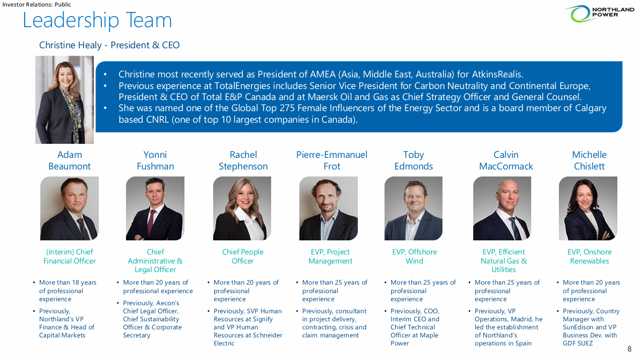 Northland anticipates generating pre-completion revenue from Hai Long in the second half of this year. However, this cash flow is used to fund the construction of the Hai Long project and will not be included in Adjusted Free Cash Flow or Free Cash Flow metrics until the project reaches commercial operations, expected in 2027. Additionally, Northland incurs development expenditures in pursuit of its 10 GW development pipeline. These expenditures will reduce near-term Free Cash Flow until the projects achieve commercial operations but are expected to deliver accretive long-term growth in earnings and cash flow in future years.