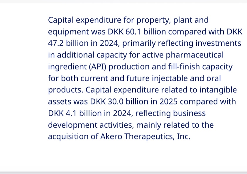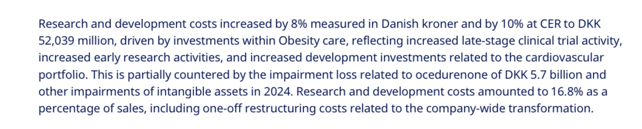 On tiedossa että Novo on investoinut 2024 ja 2025 erittäin paljon uusiin tehtaisiin ja tutkimukseen ja kehitykseen. Capex investointien lisäksi tutkimus-ja kehityskulut pitäisi ajatella investointina. Voisi perustellusti ajatella että lääkeyhtiölle investointi tutkimukseen on jopa se tärkein tapa investoida.