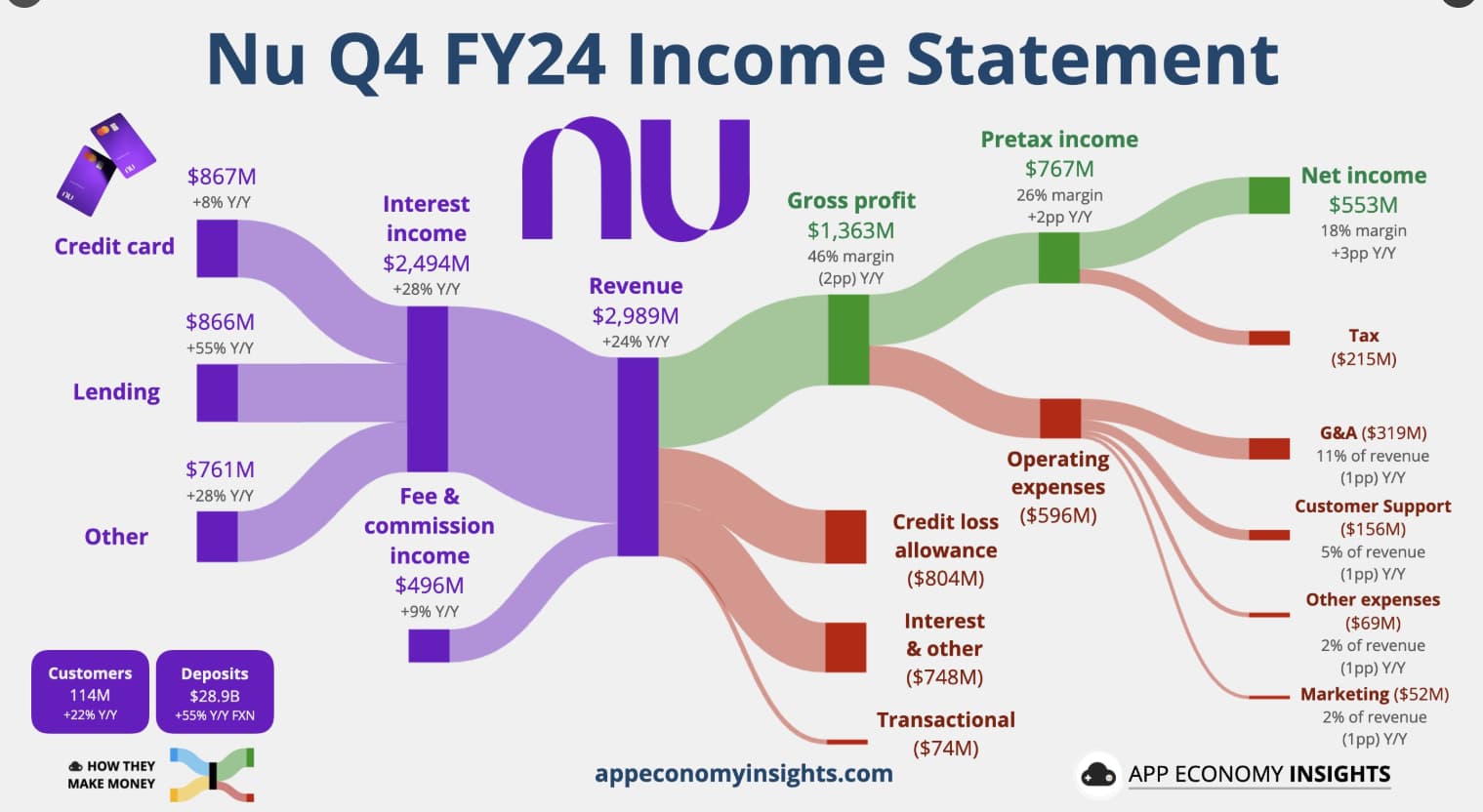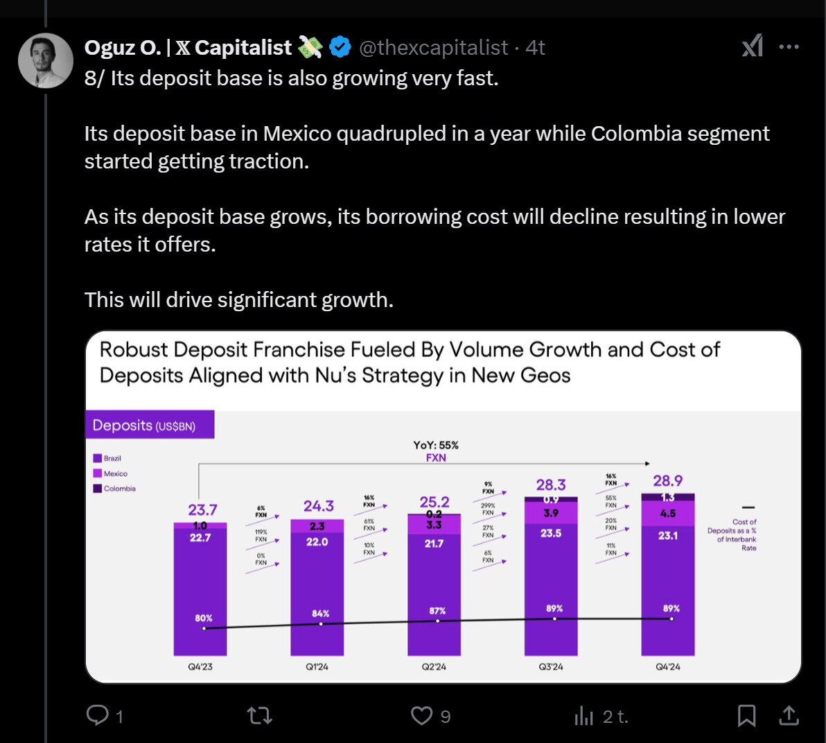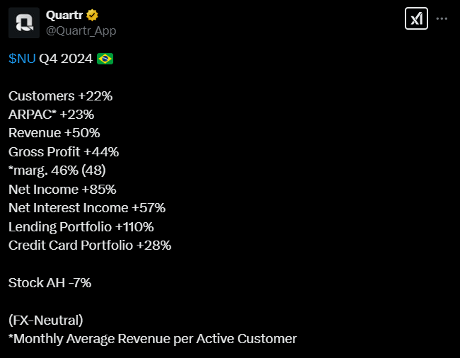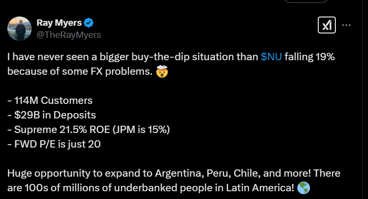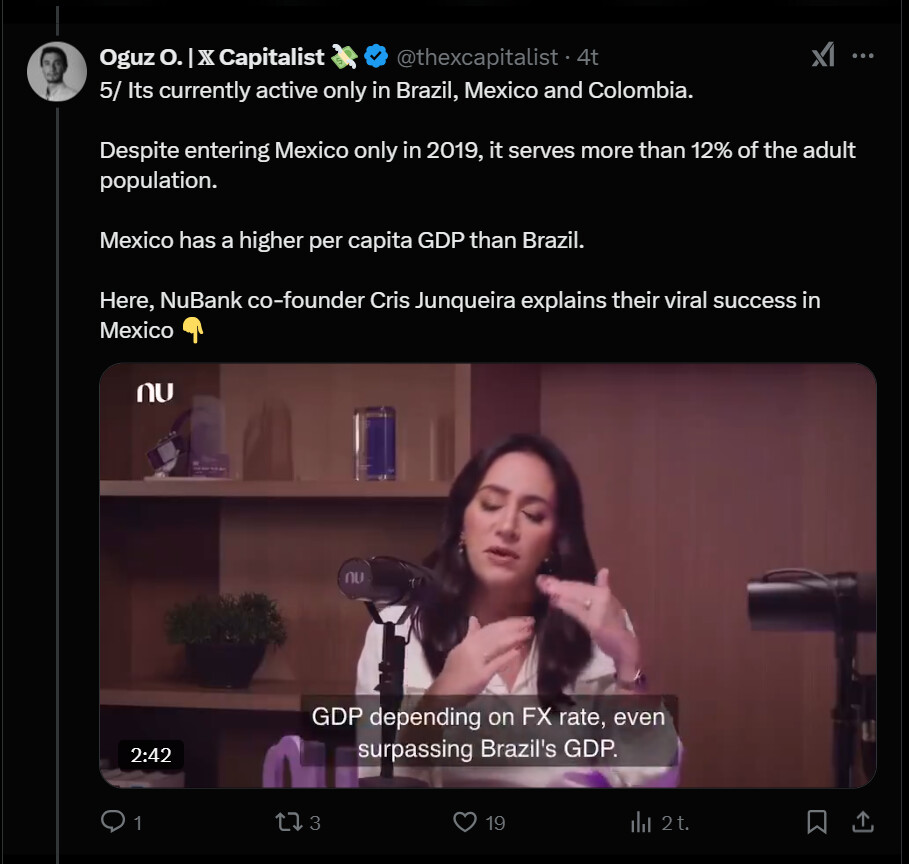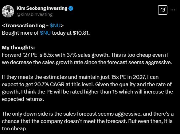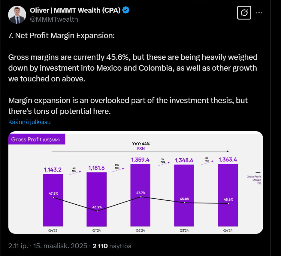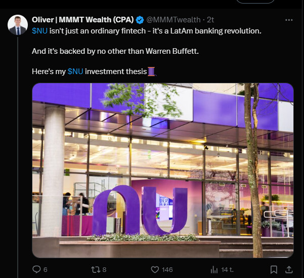 Tässä on nostettu Nu Holdingista muutamia seikkoja ylös. Tviitissä korostetaan sillä olevan hyvin alhaiset kulut per asiakas, joka onnistunut ilmeisesti aika paljolti tekoälyn avulla.