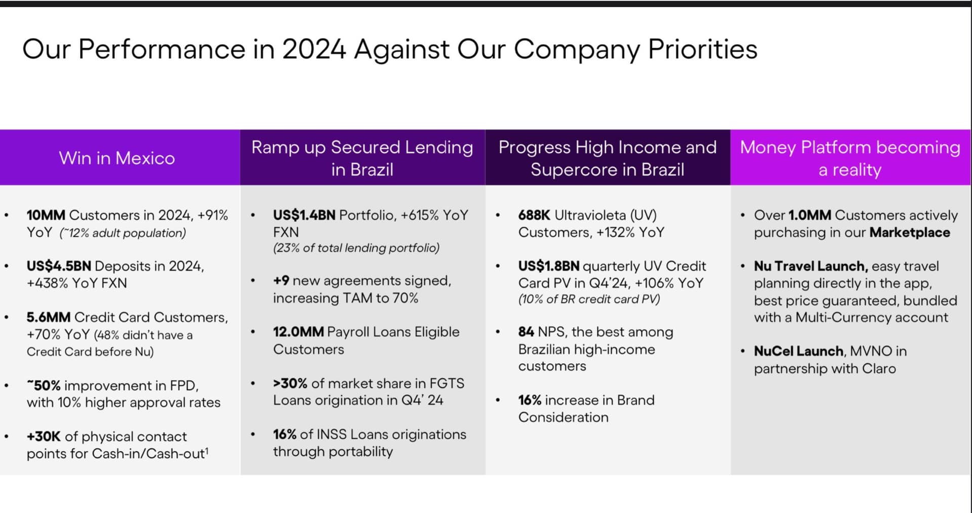 Alla olevassa artikkelissa tuodaan esille, miten Nubankin tuorein tulosjulkaisu paljasti merkittäviä tulevaisuuden tavoitteita; yhtiö aikoo laajentua Latinalaisen Amerikan ulkopuolelle ja kehittää palveluita peruspankkitoiminnan rinnalle. Tämä oli ensimmäinen kerta, kun laajentuminen globaaliksi toimijaksi mainittiin selvästi.