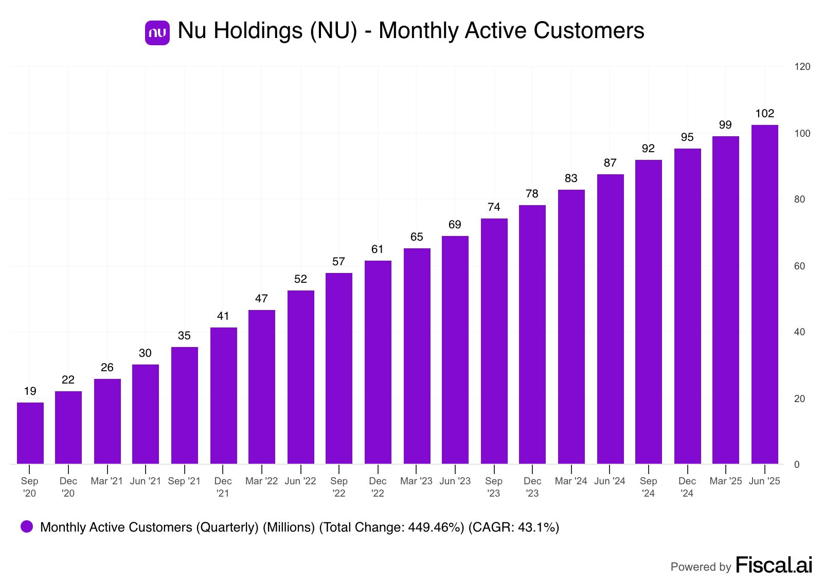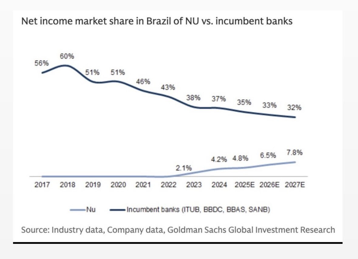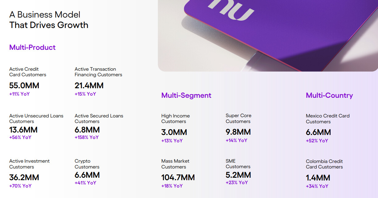 Tässä on monipäkkeriteemaisesta ketjusta bongattu Nu Holdingsin osuus. Siinä ilmaistaan, miten Nu Holdings kasvaa nopeasti ja kannattavasti.