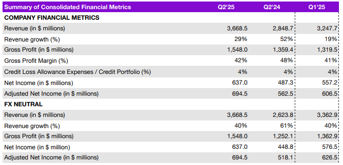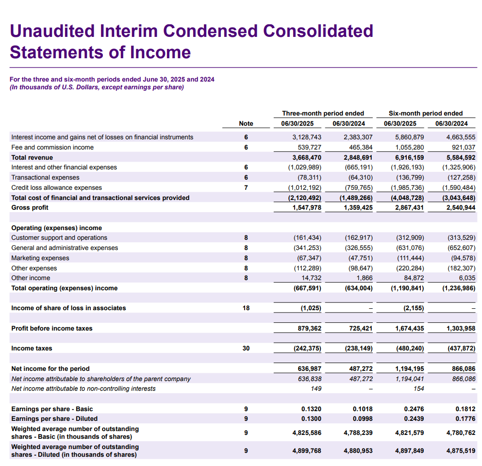 Yhtiöllä nyt Brasilian aikuisväestöstä sellainen n. 60% markkinaosuus, ja vastaavasti Mexicossa ja Kolumbiassa ollaan vasta aika lapsenkengissä tämän osalta: markkinassa siis huikeasti edelleen kasvupotentiaalia. Esimerkiksi pelkästään Mexicossa luottokorttiasiakkaat lisääntyivät +52% YoY.
