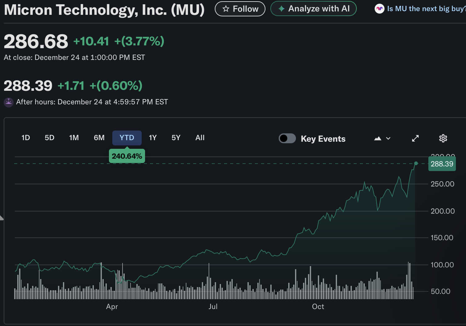 Yksi vaikeimmista taidoista sijoittajana oppia on lopettaa yliajattelu ja ostaa laidasta isoja voittajia, jotka ovat jo ehtineet nousta reilusti. Muistivalmistajat eivät näytä nyt mitään hidastumisen merkkejä: