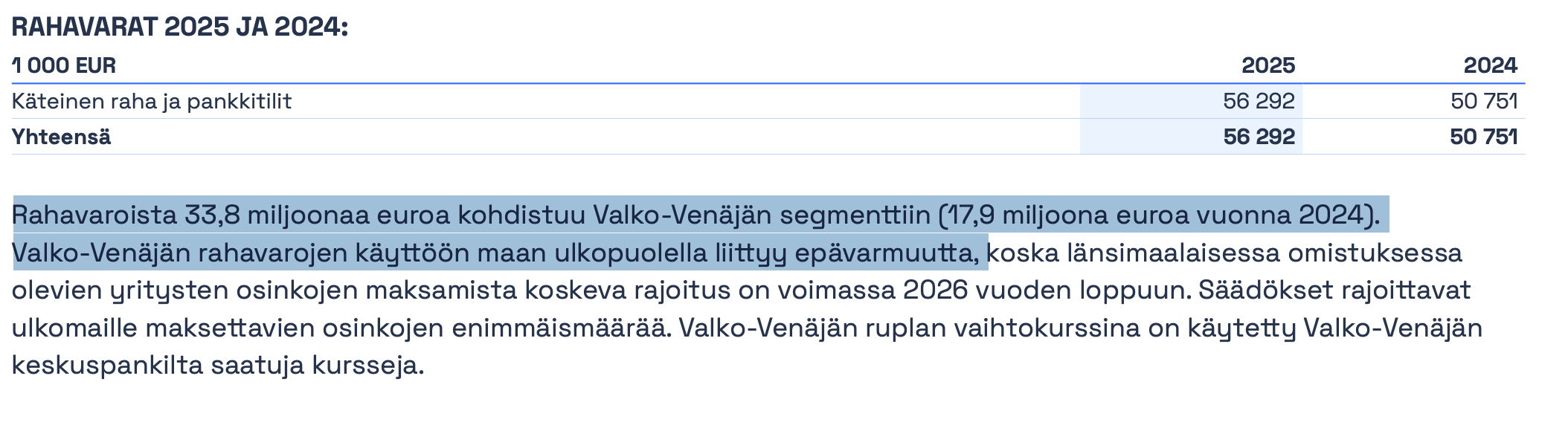 Olvi certainly has a good balance sheet otherwise, but as a shareholder, I want to highlight this issue, just like I did a year ago. Management does not communicate about these matters beyond what is legally required. Everyone has to dig up this information themselves, even though I consider it a quite significant matter.