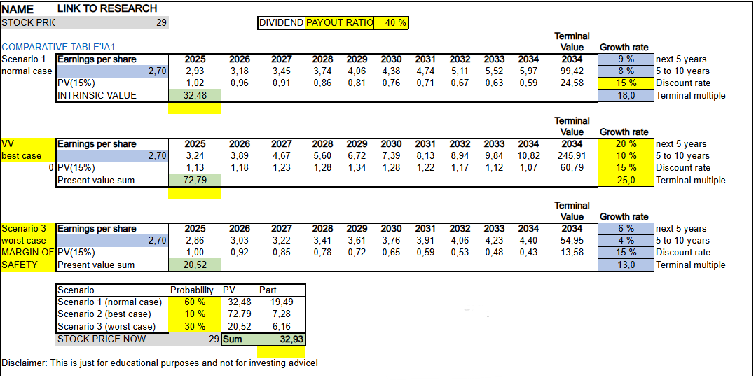 If the current stock price remains above €30.84, the stock may not yet offer sufficient margin of safety. However, if the price falls below this level, it could represent an attractive buying opportunity.