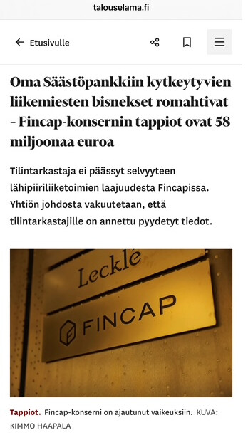Jos vielä suotte, niin tässä olisi analyysia Fincapin ongelmayhtiöistä. Tilinpäätökset oli rekisteröity PRH:n vasta viikko sitten, joka paljastaa katastrofaalisen tilanteen.