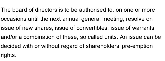 Mutta toinen päätettävä kohta on johtoryhmälle haettava valtuutus järjestää myös uusi anti 28.12 ja seuraavan vuosikokouksen välillä: