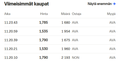 Sanoisin, ettei ainakaan pettymys tämä Q3 itselle ollut, toki sitä en tiedä miten suhteessa markkinoiden/foorumin paremmin casea tietävien odotuksiin nähden. (Kurssi toki oli -6% [hetki sitten] mutta jos suhteutetaan päivän pörssien suuntaan ja osakkeen vähäiseen likviditeettiin niin en lähtisi siitä tulkitsemaan mitään)