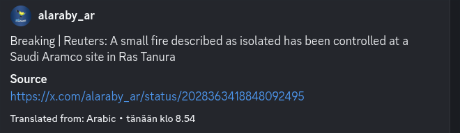 Saudi Aramco julkaisi tänään viimevuoden tuloksen ja heidän CapEx pysyy korkeana. Aramco vahvisti 50–55 miljardin dollarin investoinnit vuodelle 2026 vs käytetty 52 miljardia 2025