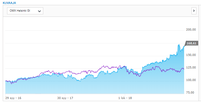 Tuotto on ollut 19,0% per annum vs. OMXH GI ~7% per annum ja Inderes-mallisalkku ~14% per annum.