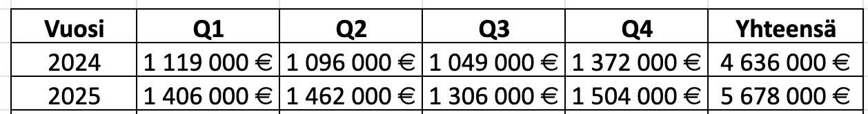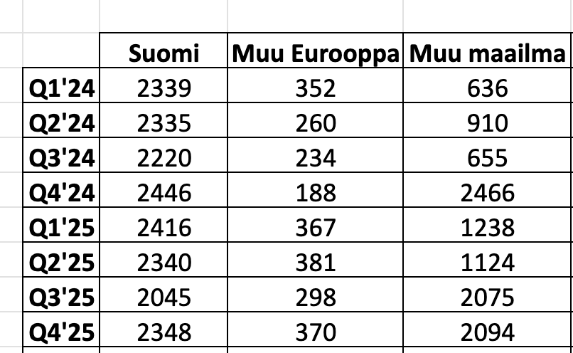 Ohjeistus vuodelle 2026 vaikuttaa varovaiselle. (Uskon ja toivon, että yhtiö pääsee nyt antamaan vuoden 26 aikana positiivisen tulosvaroituksen)