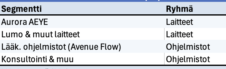 Jos ja jos Aurora AEYE liikevaihto olisi vuoden lopussa esimerkiksi 3 miljoonaa niin yhtiön arvosta jo karkeasti puolet tulisi siitä. Jos kasvu nyt puolestaan tärkeiden strategisten pullonkaulojen (Epic ja ISO) poistuttua ei kiihdy merkittävästi, on syytä epäillä tuotteen markkinapotentiaalia yksistään retinopatiaseulonnan työkaluna. Tarkoitan siis sitä, että iso läpimurto voi siinä tapauksessa viitata siihen, että muitakin algoritmeja ja näin ollen myös Lumoa kaivataan.