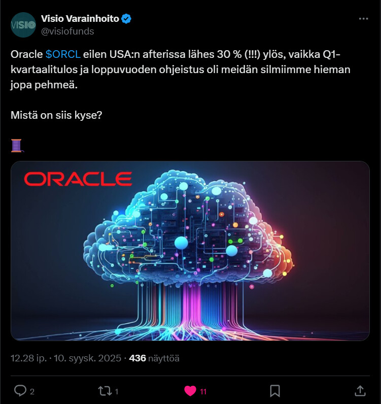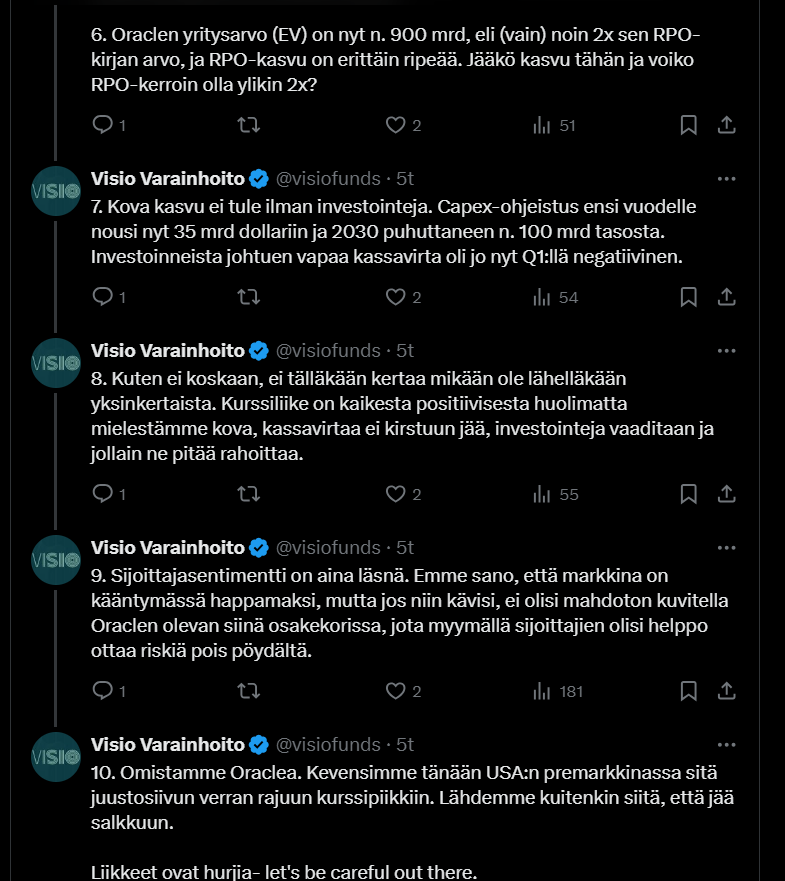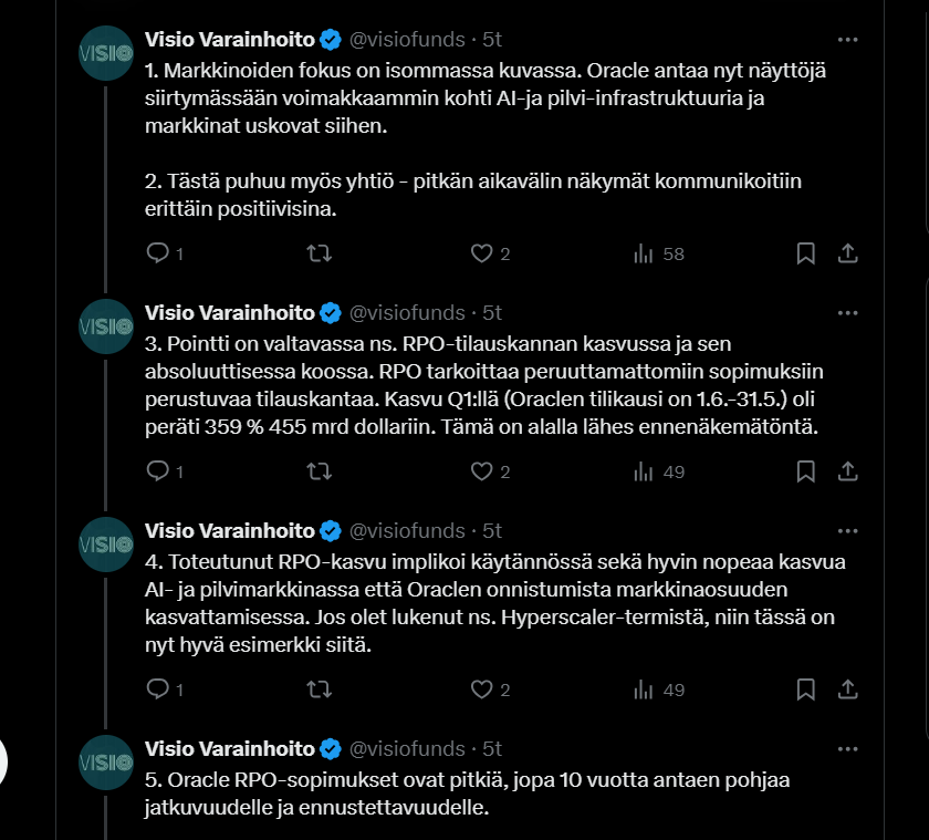 Tässä on tuore tviittiketju Oraclesta Visio Varainhoidon tapaan. ![]()