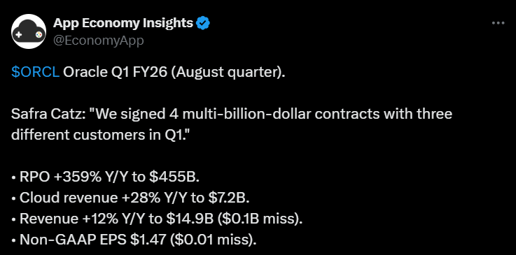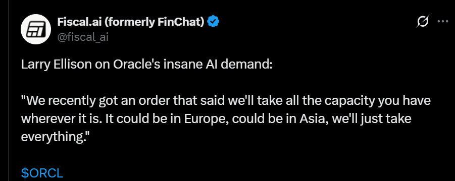Tviitin pääsanoma on kai se, että Oraclella on valtava kysyntä tekoälypalveluille.