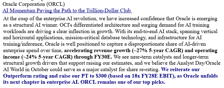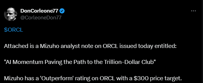 Mizuhon analyysin mukaan Oraclella on vahva asema tekoälymarkkinoilla, mikä tukee kuulemma nopeaa liikevaihdon ja tuloksen kasvua tulevina vuosina.