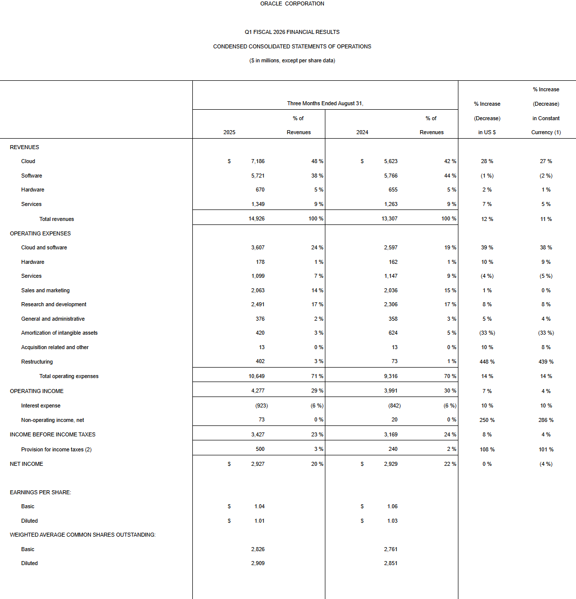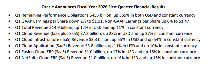 Oracle raportoi vahvasta kasvusta pilvipalveluissa, vaikka perinteisellä puolella oli vaisumpaa. Pilvipohjainen infrastruktuuri ja sovellukset vetivät erityisen hyvin, lisäksi yhtiön sopimuskanta paisui historiallisen suureksi.