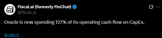 Aiemmin nostamani riski OpenAI:n maksukyvykkyydestä ei tietenkään voi realisoitua, jos megateknot itse rahoittavat sitä ostamaan korttinsa (NVIDIAn tapauksessa) ja datakeskuskapasiteettiaan (esim. Microsoftin ja Oraclen tapauksessa, joskin Oracle ei ole käsittääkseni sijoittanut OpenAI:hin). ![]()