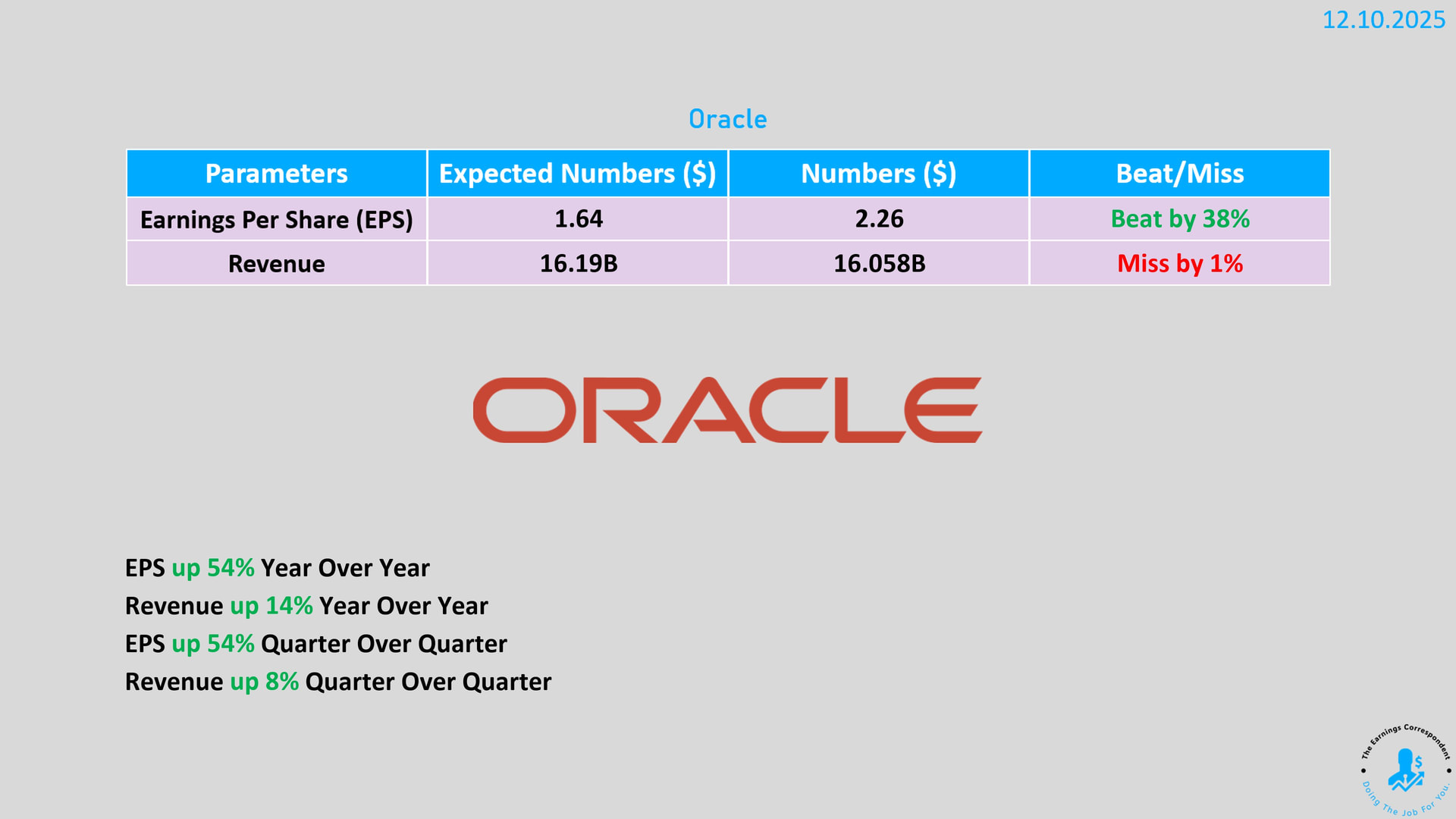 - At the same time, Oracle indicated that its core database and data platform business will grow.