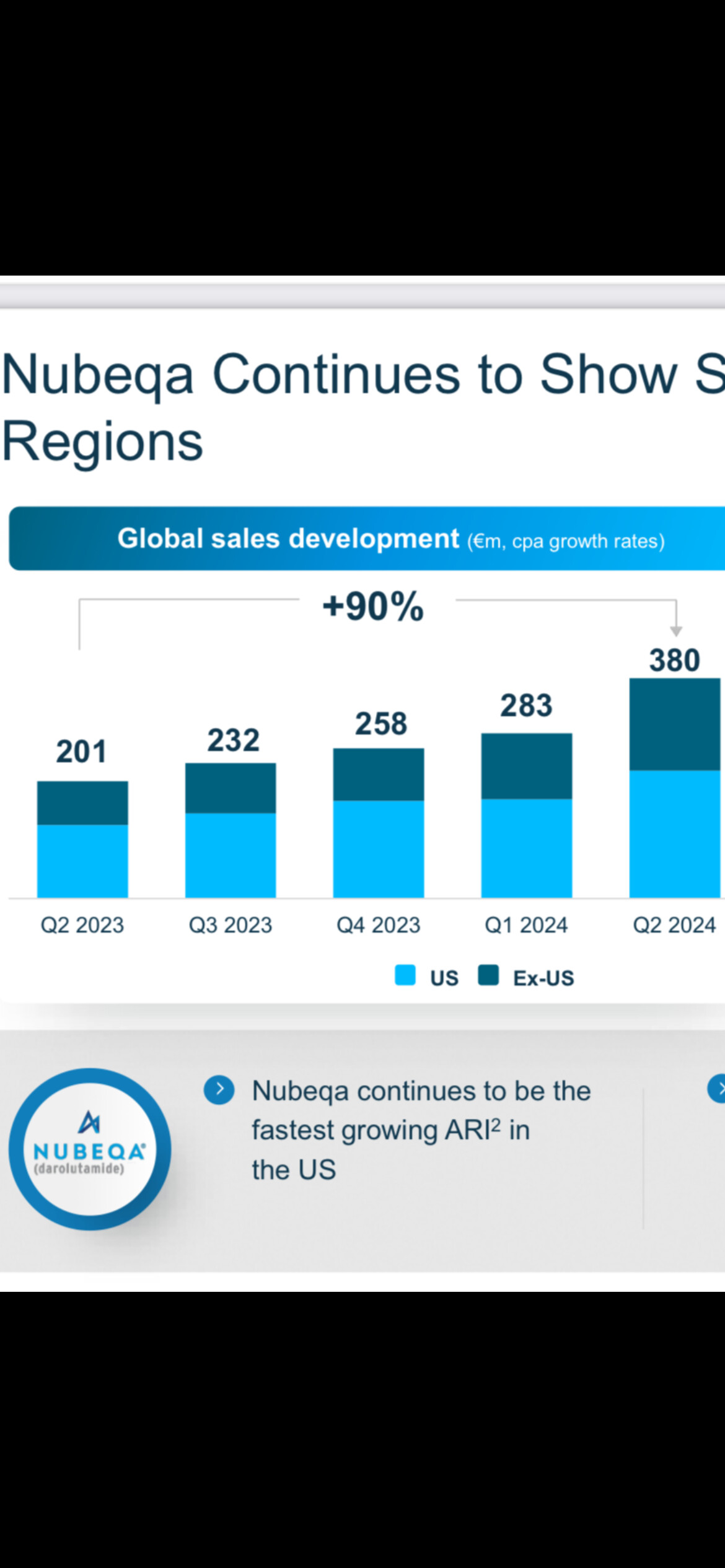 Orionâs interim report today at 12:00. Below is a screenshot from Bayerâs brand-new interim report regarding Nubeqaâs sales development: 90%. Anything other than impressive figures would have been a surpriseâŠ