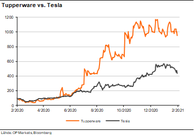Siinä mallia miten toisella muovikippofirmalla meni yli koronakriisin vuonna 2020. Osake noin 10-12 kertaistui vuoden aikana.