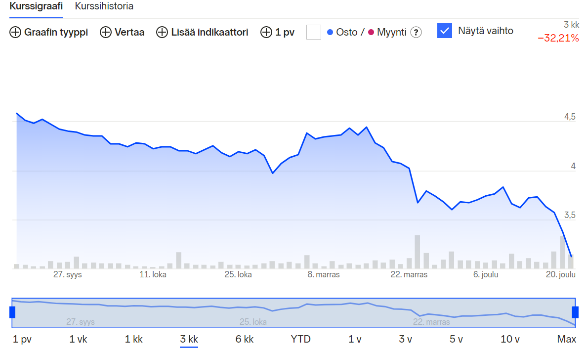 Itseäni kiinnostaa tällä hetkellä hyvän osinkolingon eli cityconin ostaminen laskevaan kurssiin. Mutta mitäs jos osingonmaksu tyrehtyy eikä kurssi toivu. Cityconin kohdalla heikentyvä osinko voisi olla sijoittajille fataali.