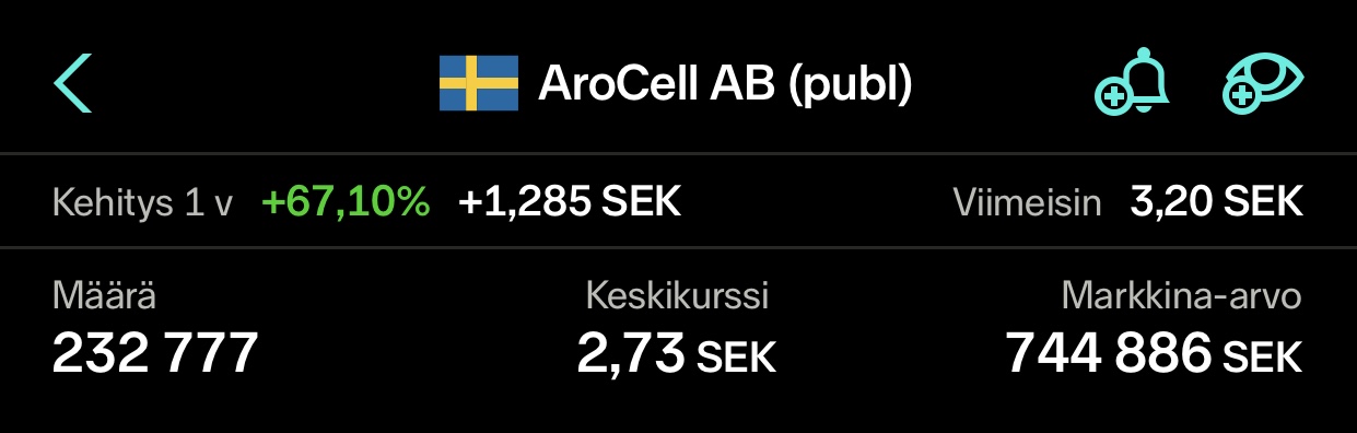 Arcane Crypto AB ostettu , eilinen empiminen kostautui nyt 30% kalliimmalla kurssilla. Tankataan liisää jos kurssi vielä tippuu ja saadaan halvemmalla alempaa.